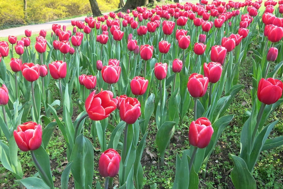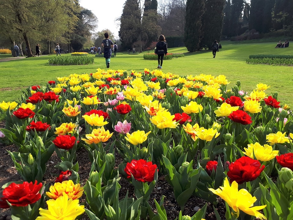 Il Parco in questo periodo si riempie di più di un milione di tulipani di oltre 300 varietà diverse, oltre ad altri fiori come muscari, narcisi, allium, myosotes, fritillarie e giacinti, disposti in forma libera o in aiuole con composizioni studiate nell’accostamento del colore.